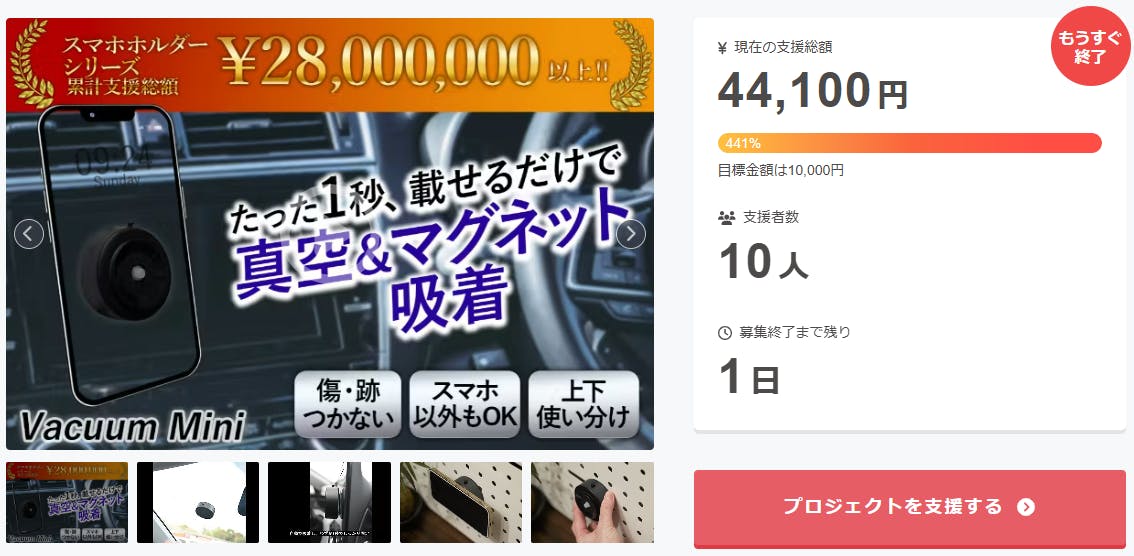 ご支援者様、車内やキッチン、どんな場所でもスマホが固定できる!真空&磁気吸着式スマホホルダーにご興味をお持ちいただきありがとうございます。お陰様で、開始から支援総額4万円達成することができました!終了までわずか 1 日となります。<片側が真空吸着、もう片側がマグネットで強力に固定され、平...