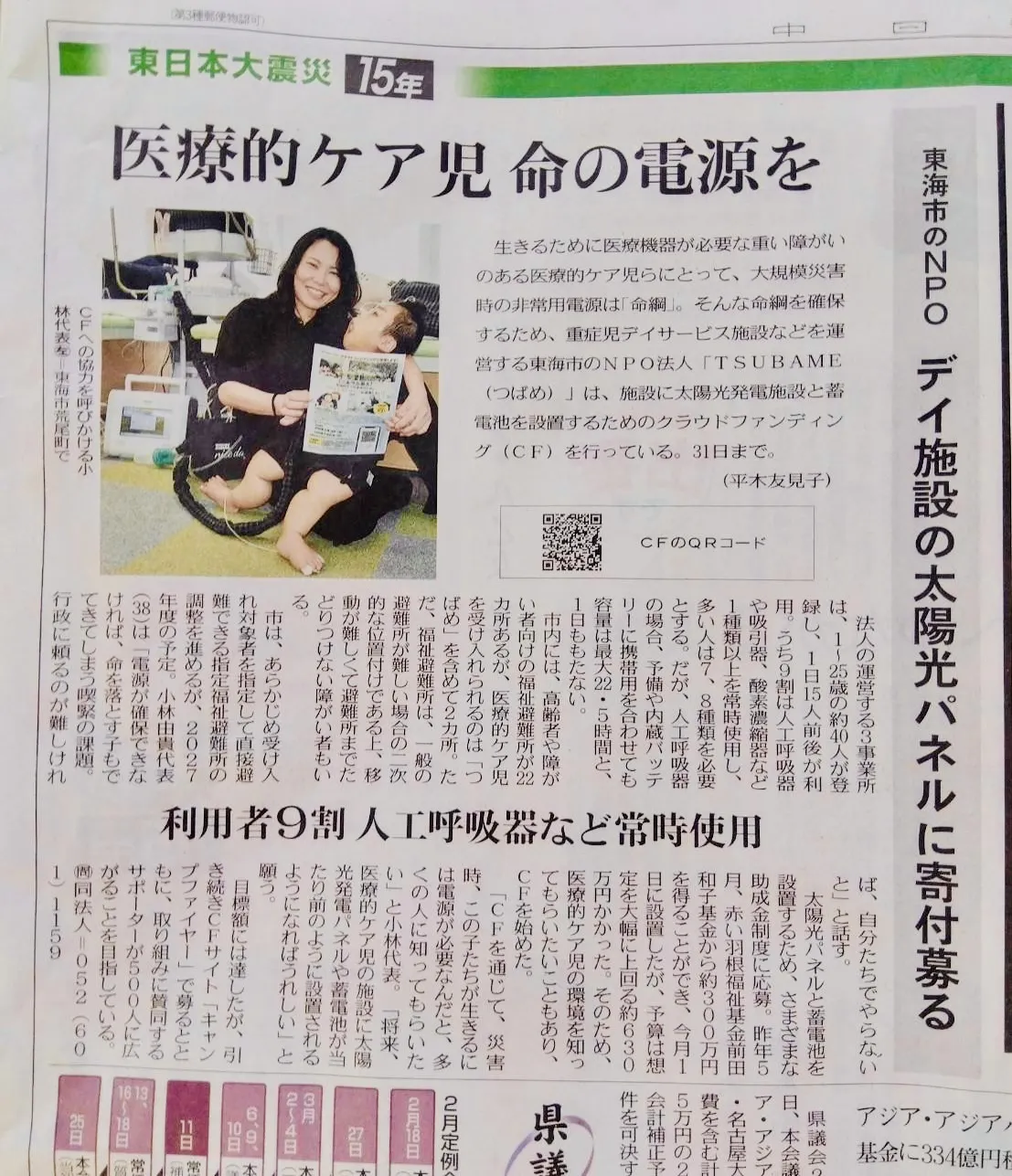 ご覧いただきありがとうございます!!本日2026年3月12日、中日新聞朝刊の県内版に、クラウドファンディングについての記事を掲載していただきました。昨日は東日本大震災が起こった日。私たちが災害から学ぶべきことはたくさんあります。今を大切に生きること。その今を守るために、備えること。改めてこのプ...