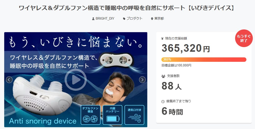 ご支援者様、ワイヤレス&ダブルファン構造で睡眠中の呼吸を自然にサポート【いびきデバイス】にご興味をお持ちいただきありがとうございます。お陰様で、開始から支援総額36万円達成することができました!終了までわずか 6 時間となります。<2つのファンが呼吸のリズムに合わせてやさしく空気を流し、...