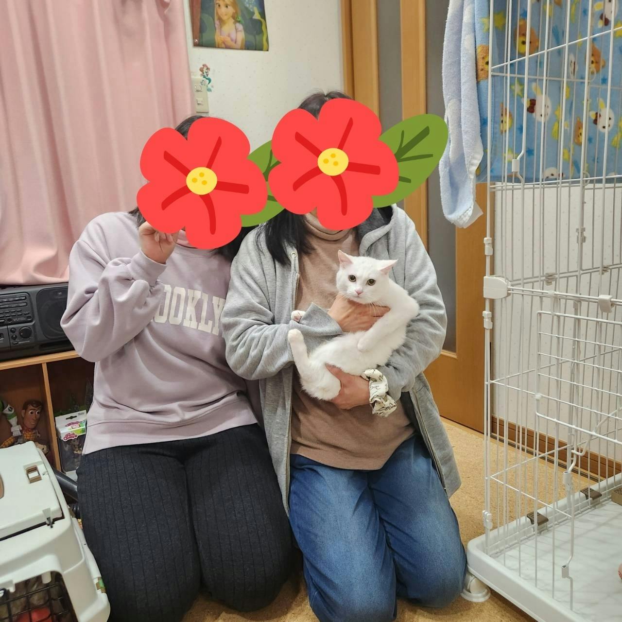 ミミちゃんお届け!2026/01/30 07:04ミミちゃんお届けしました。ご両親、お祖母様、ご子息様、お嬢様、の二世帯でお住まいの賑やかなご家庭で猫を飼うのは初めてだということです。お母様が特にミミちゃんのことを気に入ってくださりSNSの募集サイトを通じてご応募くださいました。また、三段の立派なケージもご用意くださいました。お母様は白い猫ち...もっと見る