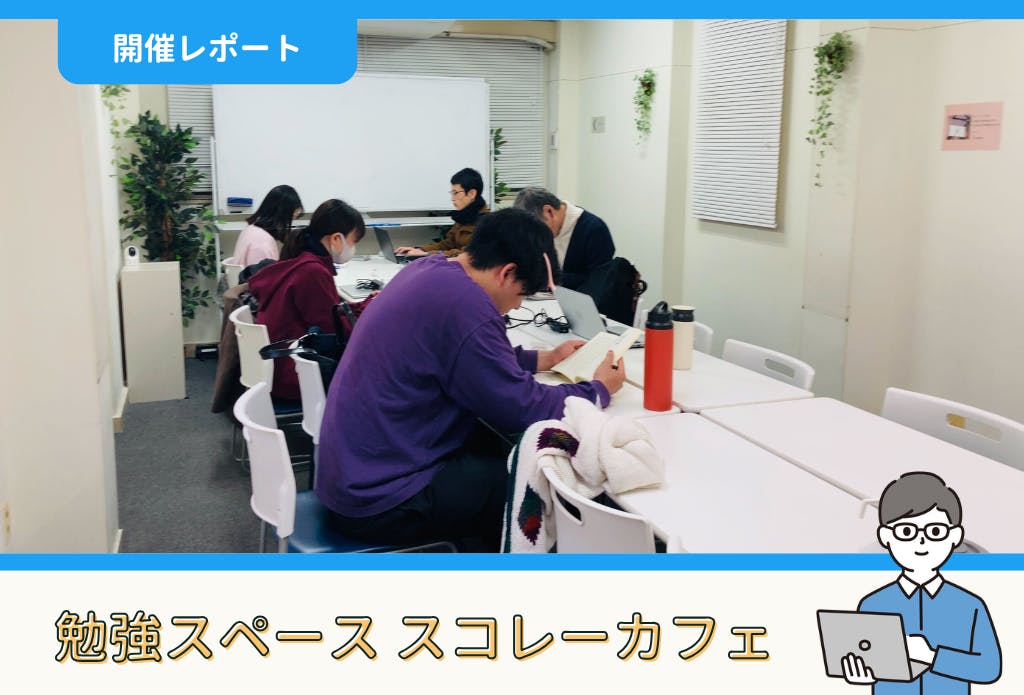 こんにちは!古岩井です(^^)今回は1月24日(土)に開催した勉強スペース「スコレーカフェ」の開催報告になります。最後までお付き合い頂ければ嬉しいです!目次1.スコレーカフェって何?2.当日の様子3.次回の開催予定参加申込みはこちら!1.スコレーカフェって何?スコレーカフェとはレンタルスペース...