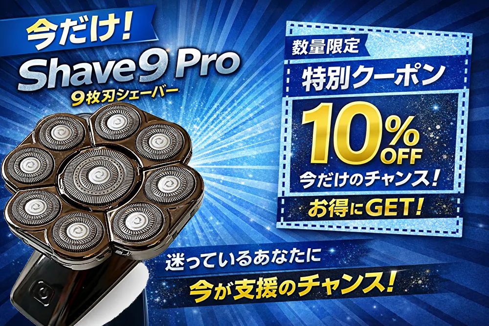 毎朝のヒゲ剃りに、思った以上に時間がかかっていませんか?Shave9 Proは、9枚刃で広く捉えて剃りやすく、朝の身だしなみを少しでもラクにしたい方に向けたシェーバーです。「急いでいる朝に少しでも時短したい」「何度も往復するのが面倒」そんな方におすすめです。そして今、迷っている方に向けて、10...
