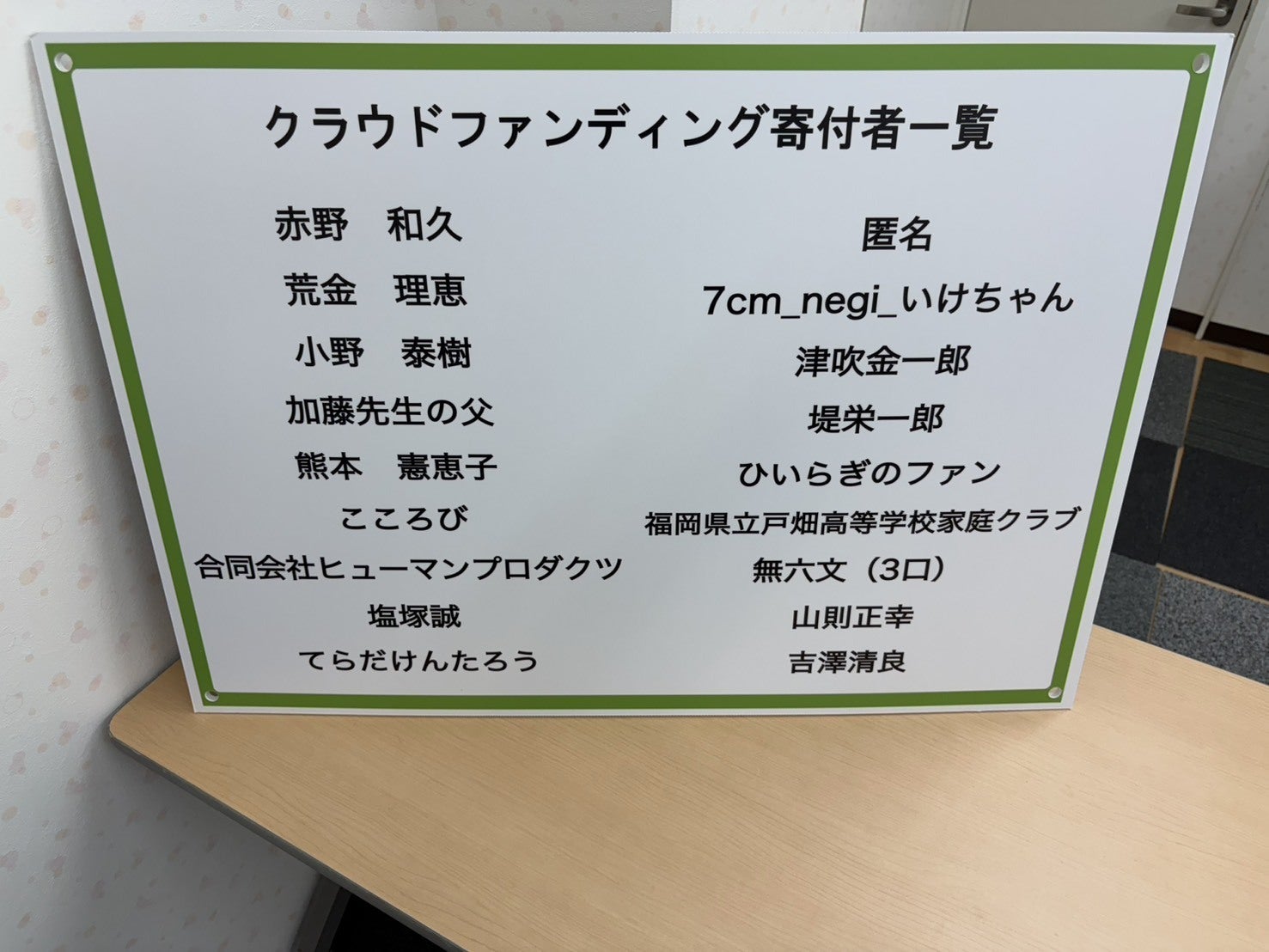 お久しぶりです。皆様、改めてご協力ありがとうございました。毎週土曜日にオープンしながら活動を続けています。コミュニティカフェ「ひいらぎ」には常連さんもできました。まだまだこれからの部分も多いですが、元気に活動しております。先日、クラウドファンディングに1万円の寄付をいただいた寄付者の方のお名前...