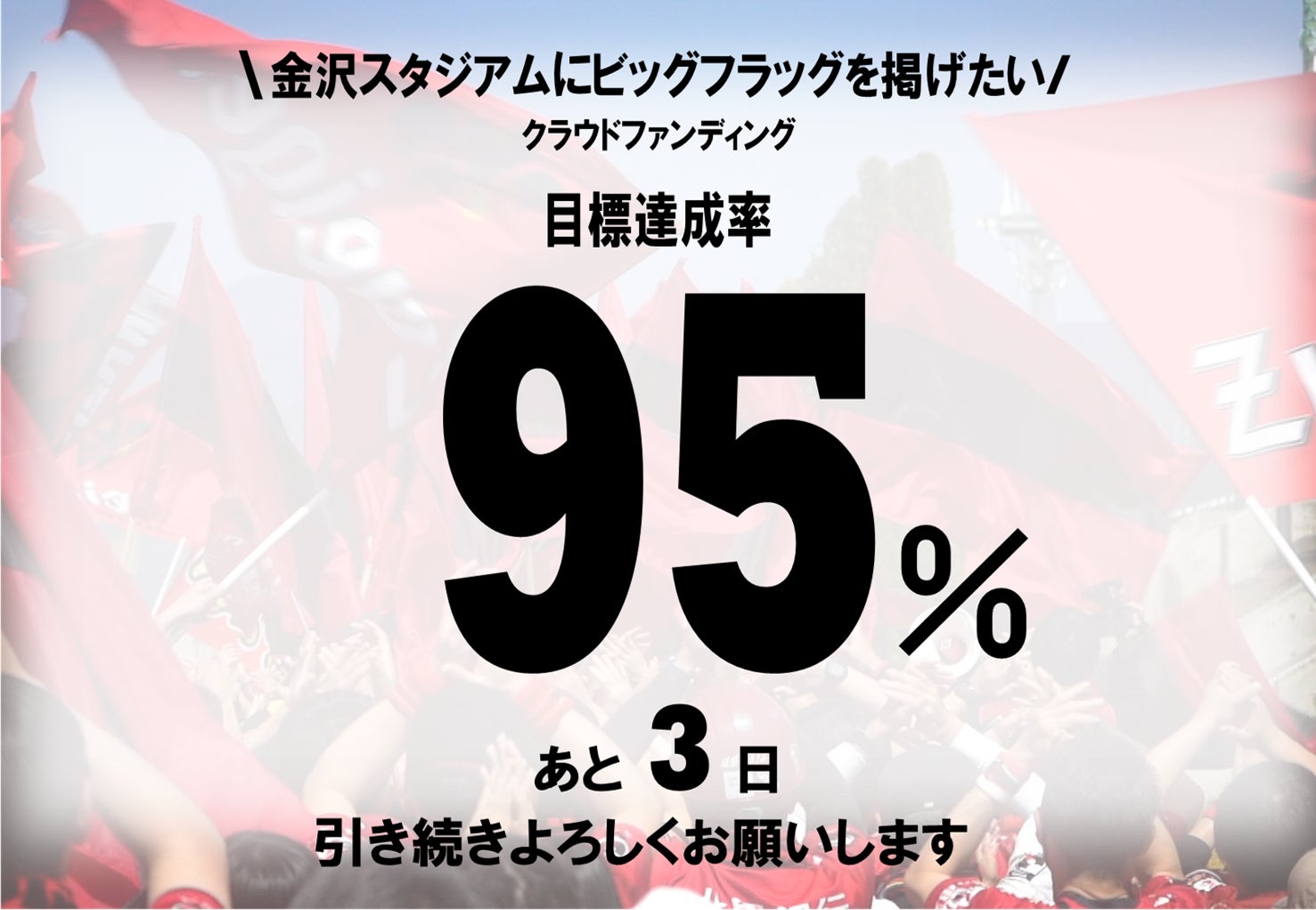 こんにちは!ビッグフラッグプロジェクト実行委員会です!皆様のご支援ご協力のおかげで目標金額95%を突破しました!!ありがとうございます。前節ホーム戦勝利から多くのご支援をいただき、90%達成のご報告を超えて、ついにここまで来ました。クラファン終了まであと3日。ラストスパート最後まで走り続けます...