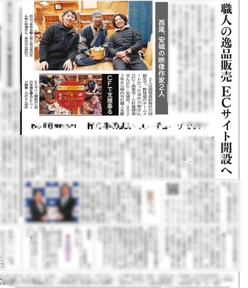 この度、中日新聞社様よりクラウドファンディングの取り組みを取材していただき、本日の朝刊にてご紹介いただきました。このような貴重な機会をいただけたこと、心より感謝申し上げます。僕たちが今こうして活動できているのは、長い歴史の中で技術を受け継ぎ、磨き続け、今日まで繋いでこられた職人の皆様がいてくだ...