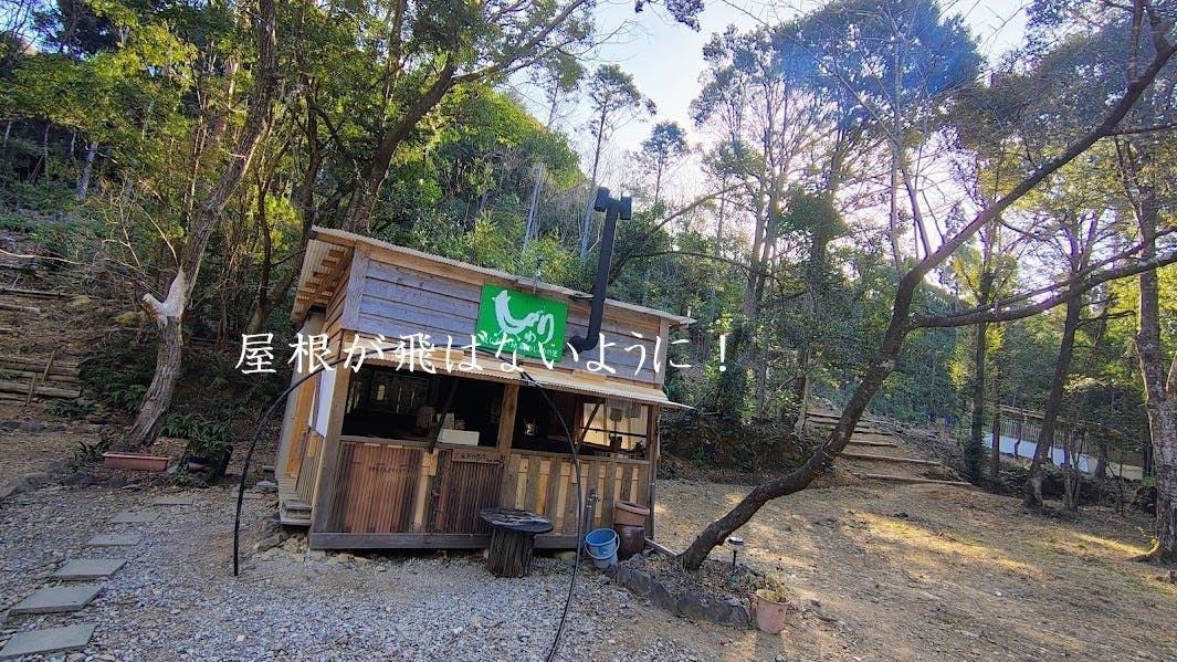みなさん おはようございます!昨日は早朝から、北西からの猛烈な風~鶏舎はすでに風対策万全にしており、大丈夫でしたが、風対策を行っていない開拓小屋のトタン屋根が煽られてます!これはいかん ヤバい!ということで、風対策開始~(^^♪今回も鶏舎の時と同じ、余った黒パイプを活用します。脚立を使って屋根...