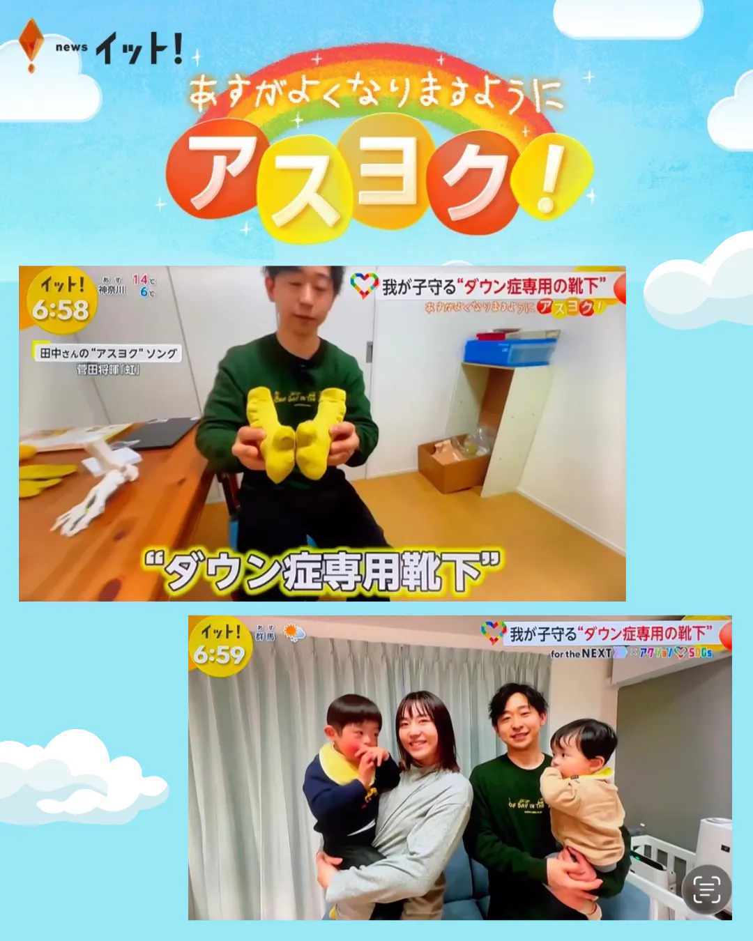 今回は、今年3月から4月にかけて放送していただいた、テレビ取材・放送についてまとめて振り返りたいと思います。ダウン症専用靴下の取り組みは、新聞掲載だけでなく、テレビでも取り上げていただく機会がありました。放送していただいたのは、フジテレビLive News イット!「明日がよくなりますように(...