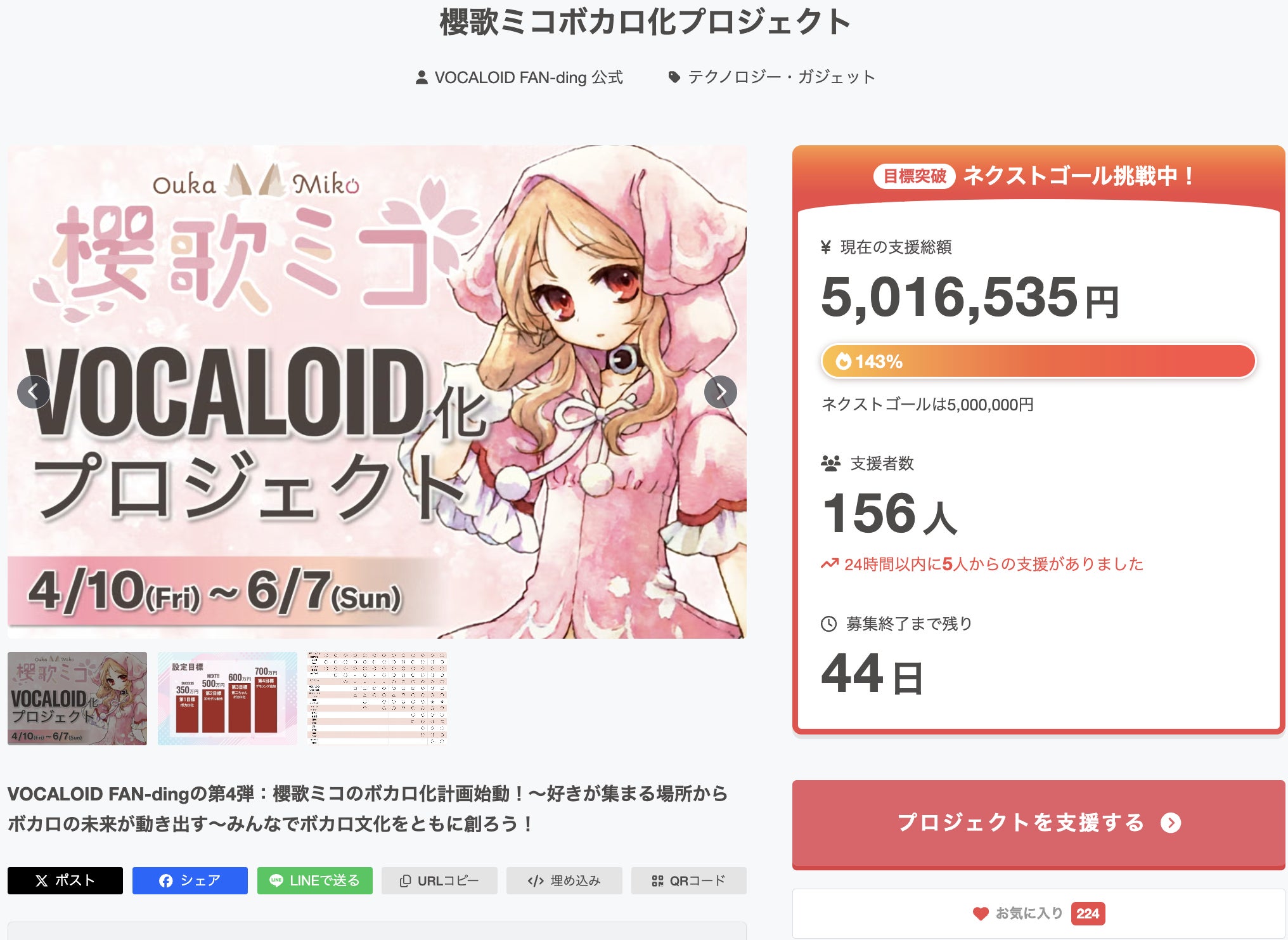 第2目標達成!!ありがとうございます。ご支援ありがとうございます!!キツネツキ様によるボカロ版衣装櫻歌ミコ3Dモデル制作決定です!!今回はこれまでのキツネツキ式櫻歌ミコのデザインを踏襲しつつ、フルスクラッチで制作をご依頼させていただければと思っております。こちらの3Dモデルは後日一般配布される...