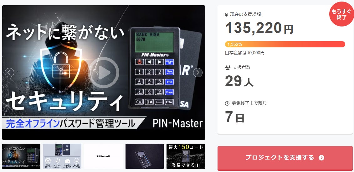 ご支援者 様、完全オフラインでアナログと同等のセキュリティ!超薄型パスワード管理ツールにご興味をお持ちいただきありがとうございます。お陰様で、開始から支援総額13万円達成することができました!終了までわずか 7 日となります。プロジェクト終了後、「完全オフラインでアナログと同等のセキュリティ!...