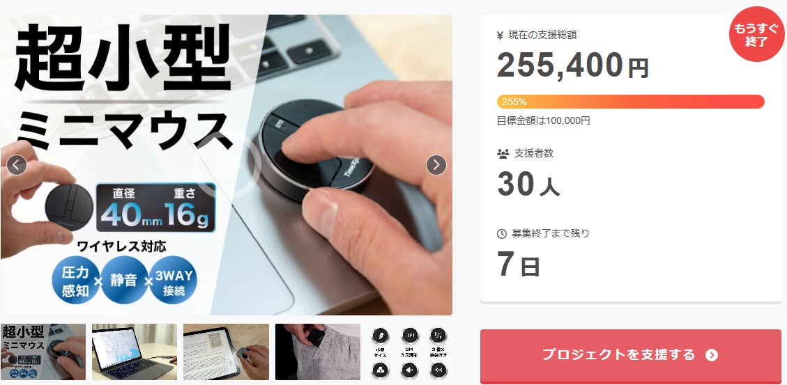 ご支援者 様、超薄型16g・3WAY接続対応新・コンパクト&本格操作性を両立したミニマウスにご興味をお持ちいただきありがとうございます。お陰様で、開始から支援総額25万円達成することができました!終了までわずか 7 日となります。プロジェクト終了後、「超薄型16g・3WAY接続対応新・コンパク...