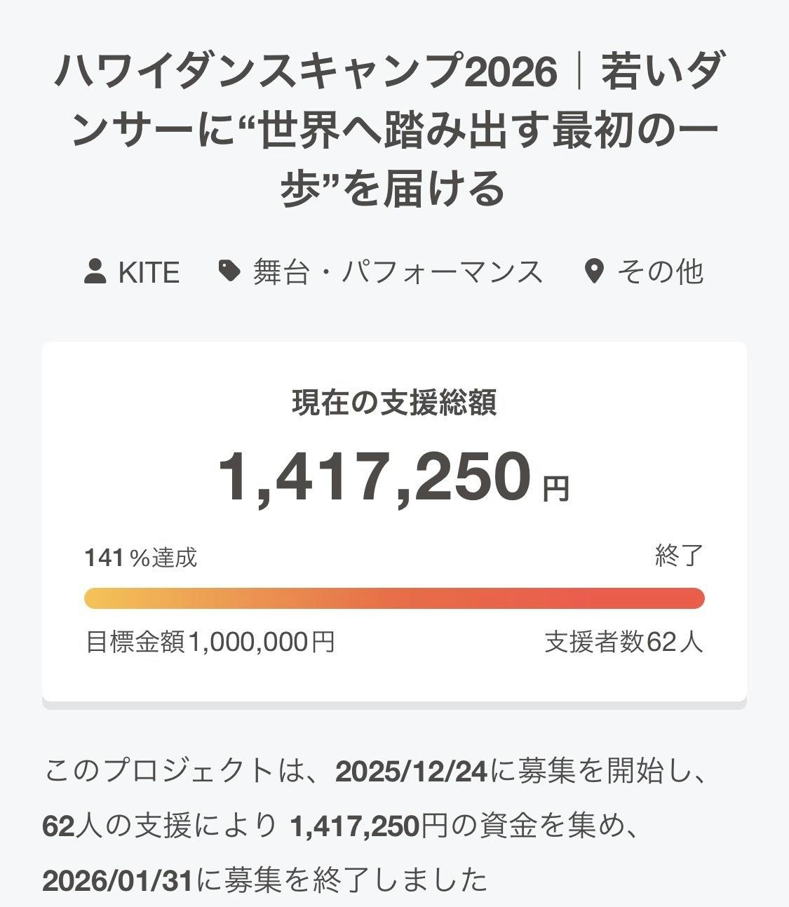1月発送予定のリターンについて2026/02/01 11:321月発送予定のリターンがおくれておりまして申し訳ございません。すべてのリターン品が揃いましたので梱包が終わり次第発送させていただきます。2月中旬には発送完了予定ですので、もうしばらくお待ちいただけますと幸いです。新たに・【Rockin'Jelly Bean クラウドファンディング限定ペーパーナ...もっと見る