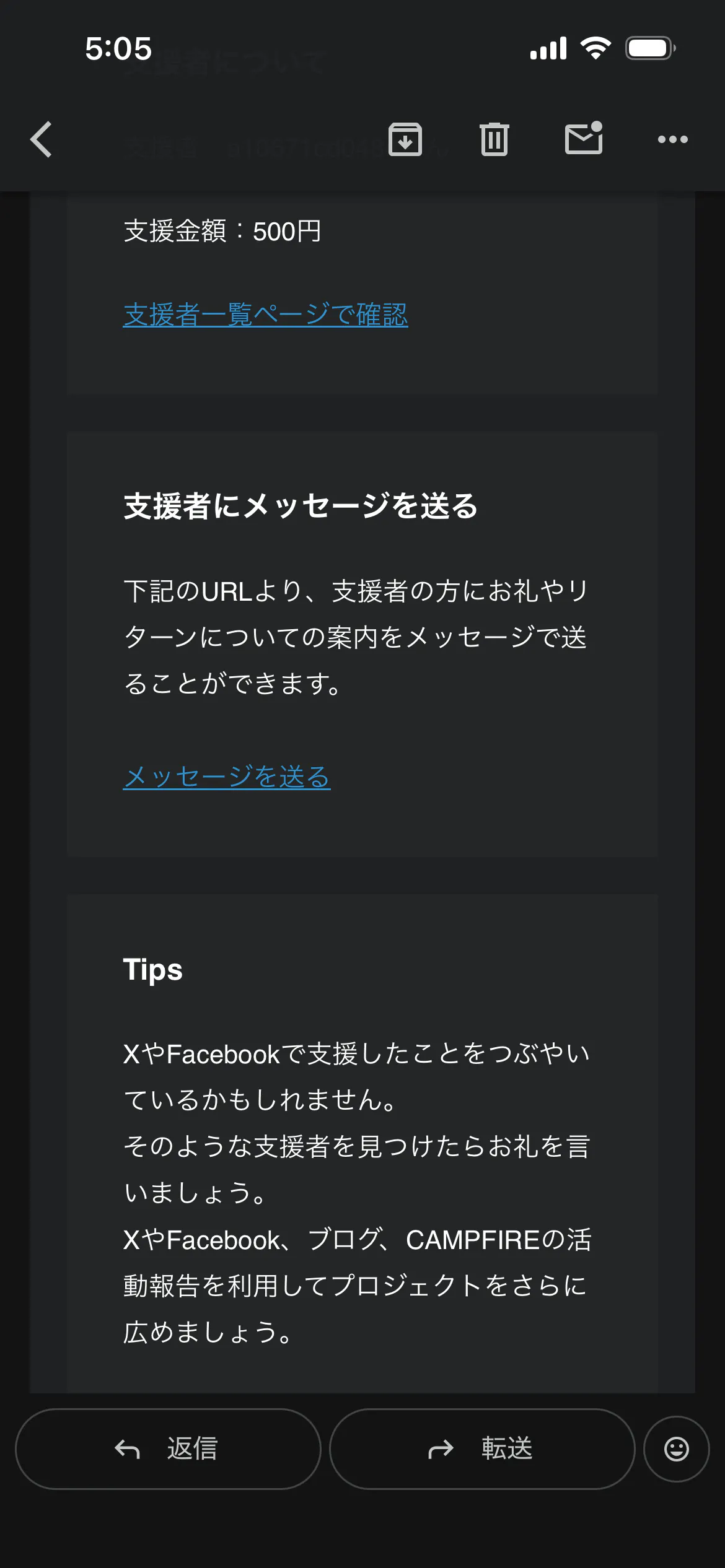 ご支援ありがとうございましたm(_ _)m1人目のご支援者様が現れましたm(_ _)mありがとうございましたm(_ _)mリターンはまた改めて、メッセージとして送らせていただきますm(_ _)mありがとうございましたm(_ _)m