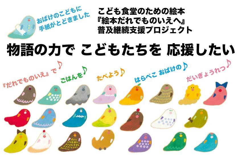 こんにちは。おばけのこどもです。物語の力でこども食堂を応援する『絵本だれでものいえへ』普及継続支援プロジェクト無事に終了しました。目標の47%を達成ご支援総額は143,200円です。温かいご支援をくださった皆様、ほんとうにありがとうございました。これからリターンのお届けについて、ご報告をしてい...