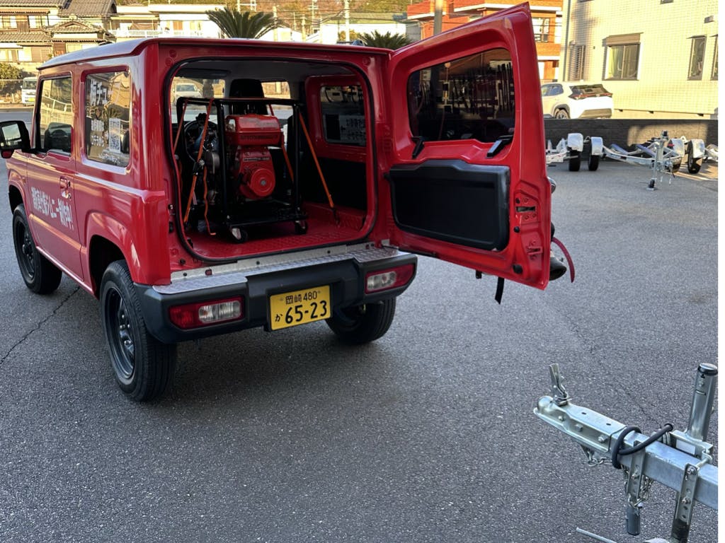 消防ジムニーの荷台ベースが完成し、消防ポンプを積むことが出来ました!あとは、ポンプの引き出しレール、ホース巻取り機設置を随時行います。リアバンパーの踏板も制作し、より消防車みたくなったと思います!本題ですが、当初予定してた、牽引トレーラーの納入(納期)が出発予定だった2月に間に合いません。購入...