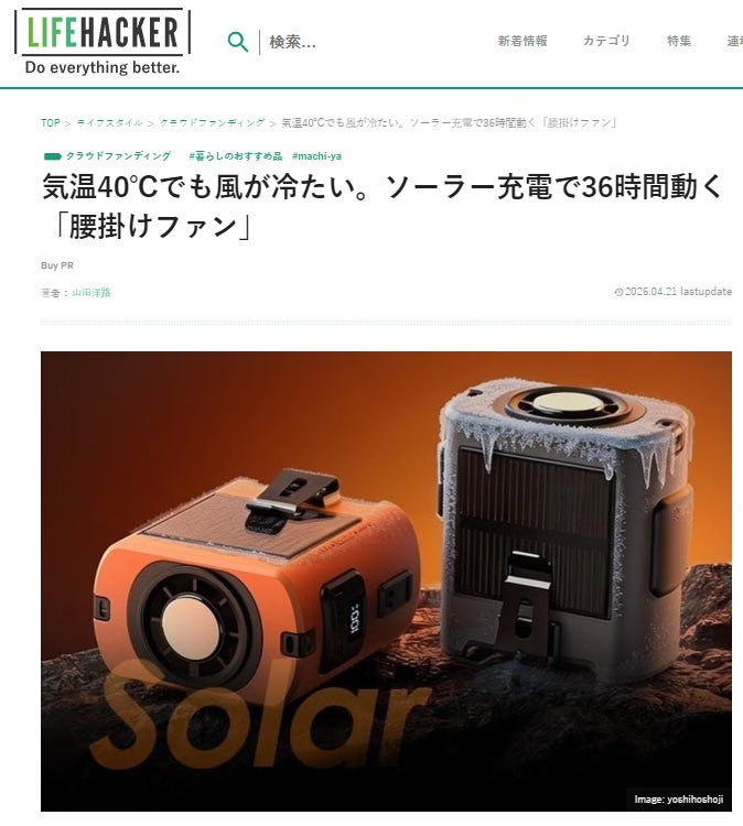 皆様 おはようございます。!yoshihoshojiです。LIFEHACKERで「TEC半導体冷却×ソーラー補助充電。炎天下でも快適な「腰掛けポータブルファン」」を紹介して頂きました。興味がある方、是非下記のリンクからアクセスしてみてください。https://www.lifehacker.jp...