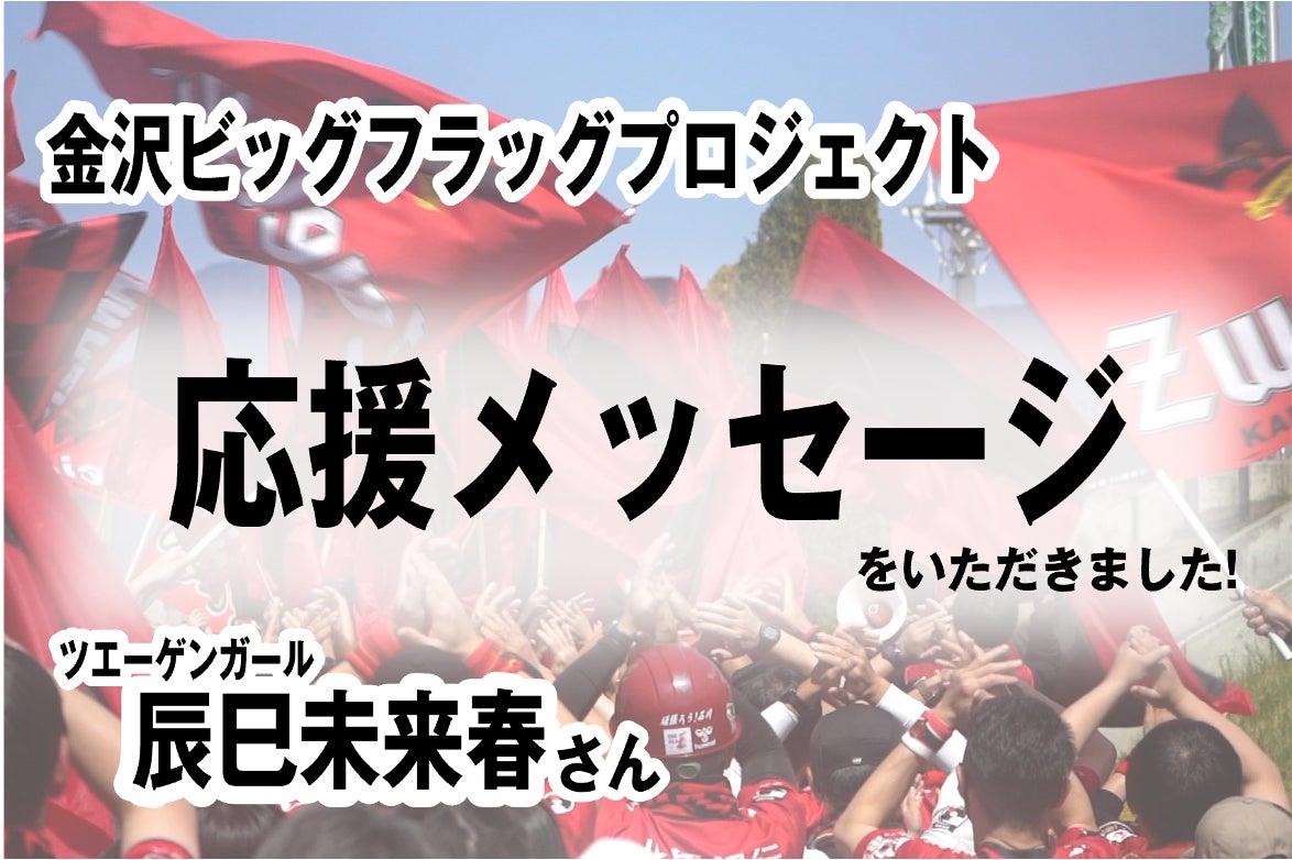 こんにちは!ビッグフラッグプロジェクト実行委員です。クラウドファンディング終了まで残りわずかとなって参りました。今回はなんと、ツエーゲンガールの辰巳未来春さんより応援メッセージをいただきました!!お忙しい中お時間いただきありがとうございます。最小リターン品は3,000円からご支援いただけます。...