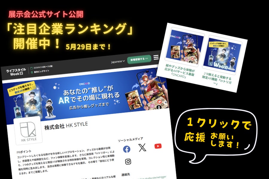 推し活EXPOの出展社・製品検索サイトが公開されました!さらに現在、アクセス数で決まる「注目企業ランキング」開催中です!出展社・製品検索サイトのアクセス数(ページビュー)をもとに上位10社を「注目企業」として選出されます!見てもらえた分だけ展示会での露出が増える仕組みになるそうです!!集計期間...