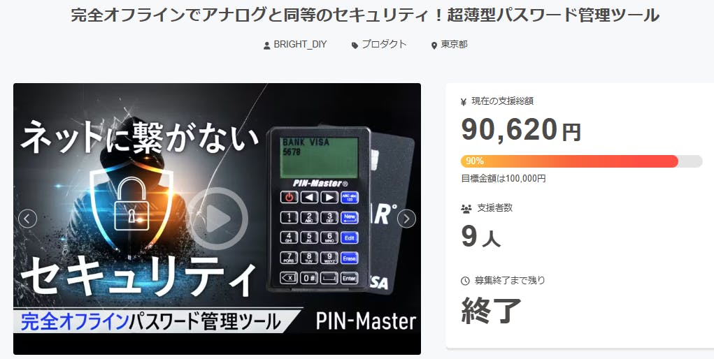 ご支援者様、完全オフラインでアナログと同等のセキュリティ!超薄型パスワード管理ツールにご興味をお持ちいただきありがとうございます。プロジェクト開始から55日目で9人ものご支援者の方々より支援頂き、無事プロジェクト終了を迎えることが出来ました。早速皆様のリターンを2026年02月末にお届けできる...
