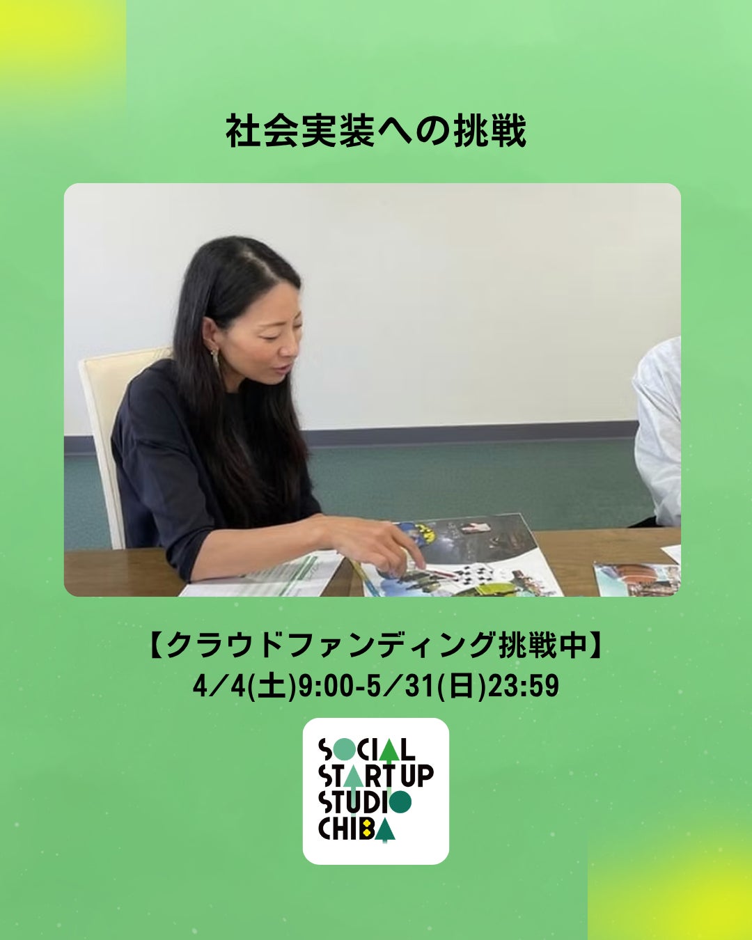 プロジェクトスタートから16日目。5名の方にご支援をいただき、10%まで到達いたしました。あたたかいご支援に、心より御礼申し上げます。SOCIAL STARTUP STUDIO CHIBA 副委員長の石井貴美子です。SSSCメンバーによる活動レポートリレー。本日のテーマは「社会実装への挑戦」で...