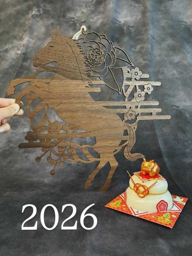 本日仕事始めです。クラウドファンディングは残り40日を切ってまいりました。年末年始の休業中の間もお気に入りなど増えていないか確認しておりました。ご支援、お気に入り、誠にありがとうございます!写真の馬は、レーザー加工機で製作した、『fuie しめ縄 ウォールアート 馬』です。レーザー加工機でこの...