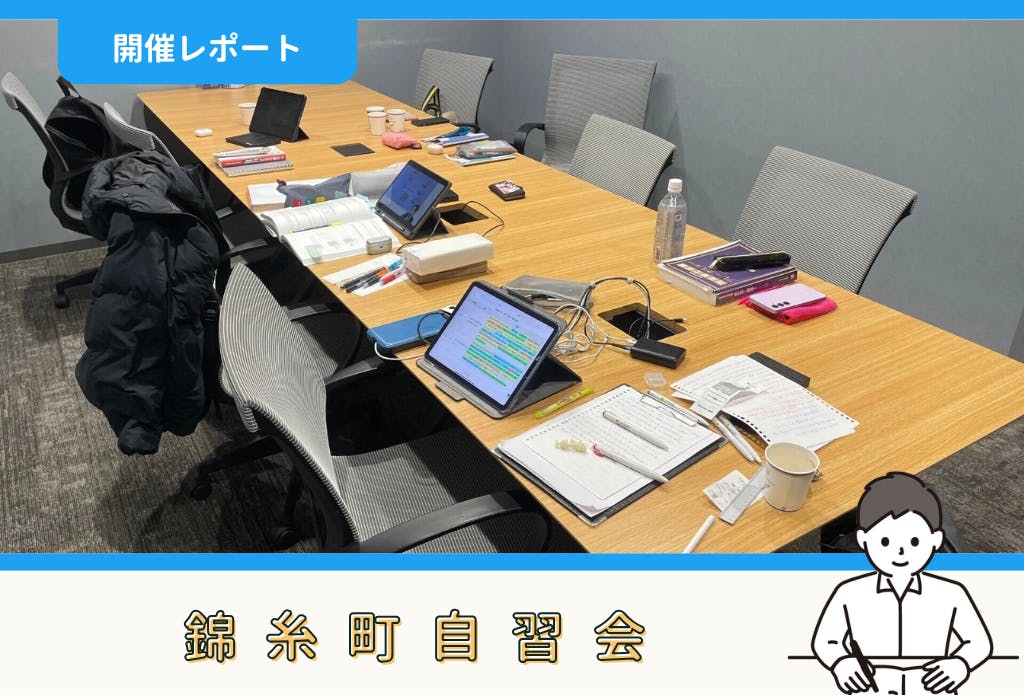 こんにちは!ファシリテーターのしょーたろーです(*^ω^*)1月17日(土)に開催した錦糸町自習会の報告をします。目次1.タイムスケジュール2.勉強・作業内容3.感想参加申込みはこちら!1.タイムスケジュール今回は下記のタイムスケジュールで開催しました。09:00 BIZcomfort錦糸町3...