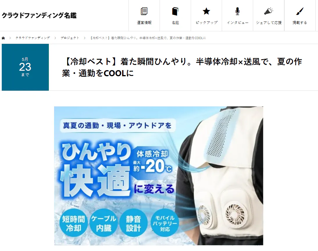 皆様、こんばんは!Bright DIYチームです。先日、クラウドファンディング名鑑で「冷却ベスト」を紹介して頂きました。話題:【冷却ベスト】着た瞬間ひんやり。半導体冷却×送風で、夏の作業・通勤をCOOLに興味がある方、是非下記のリンクからアクセスしてみてください。https://crowdfu...