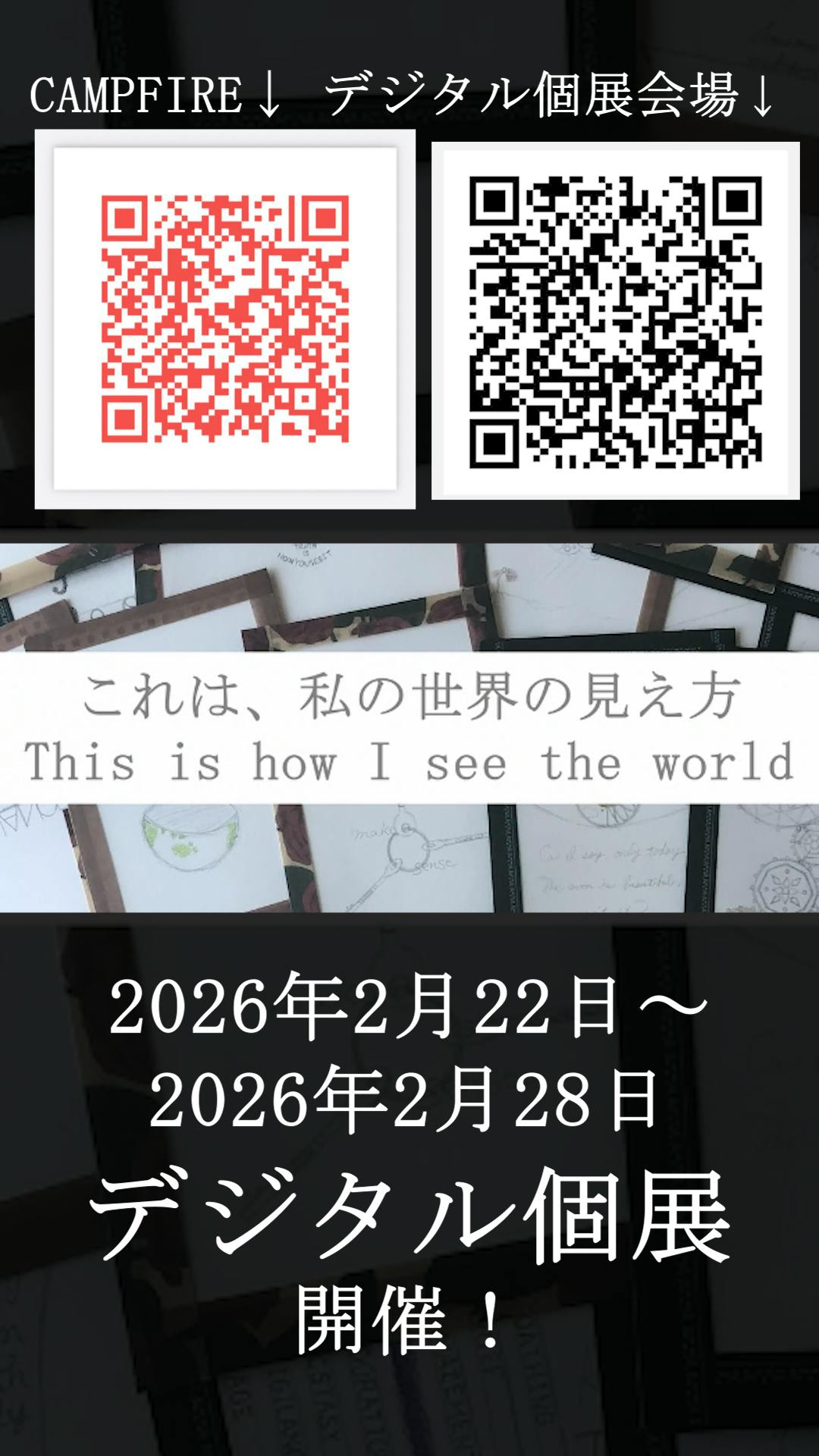 こんにちは!本日、デジタル個展最終日です!!会場はこちら少しでもご興味持ってくださった方はぜひクリックお願いします! 会場内のアンケートにも答えていただけますと嬉しいです!次の愛知県での個展開催開催の条件は、アンケートの「Q4愛知県での個展に来場したいですか?」のYESが一つ以上集まることです...