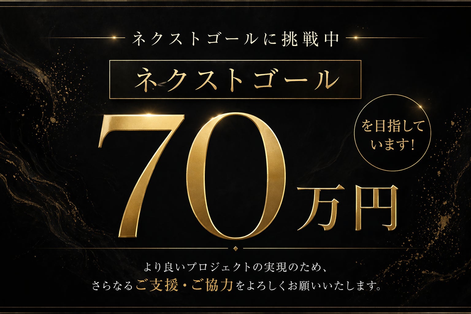 皆さまの温かいご支援、本当にありがとうございます。おかげさまで、プロジェクト開始わずか10分で目標金額を達成し、約1週間で50万円という大きな節目を迎えることができました。これはひとえに、皆さまの応援があってこそです。心より感謝申し上げます。次なる目標は「70万円」皆さまの熱い想いに背中を押し...