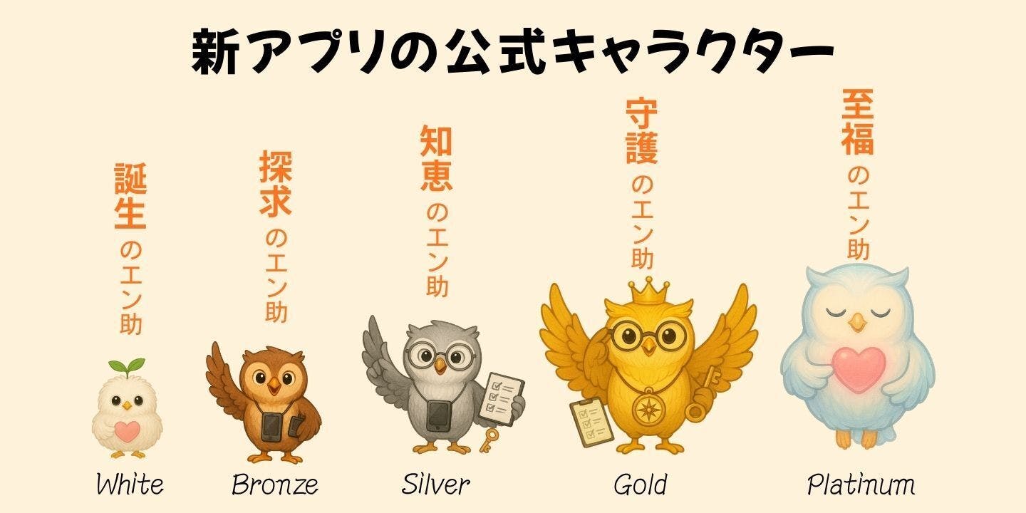 気が進まない・取り組みにくい終活を楽しみながら着実に進めていただけるよう、新しいアプリにはポイント制度と公式キャラクター「エン助」を導入します。メインキャラクターにフクロウを採用したのには、大切な理由があります。古来よりフクロウは「不苦労(苦労しない)」や「福来郎(福が来る)」という文字が当て...