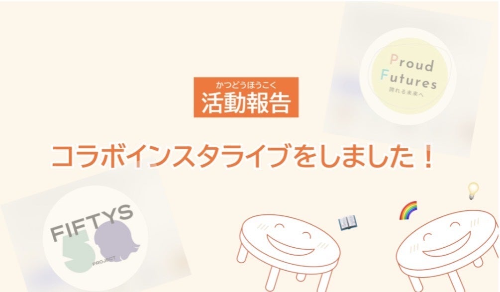 (やさしい にほんご は した にあります。)4/21(金)に、FIFTY’S PROJECTさん・Proud Futuresさんとコラボインスタライブをしました!Proud Futuresさんもクラウドファンディングを4月末までしています。そんなクラウドファンディングを頑張っている2団体(ち...