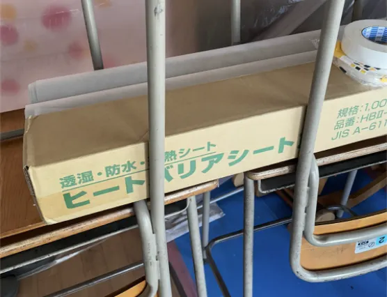 おはようございます。少し間が空きましたが、キッズルームの天井の工事が始まりました。まずは、透湿・防水・遮熱シートを張り込みます。工事費用を節約するために、本業の合間でやってくれているので、少しづつですが、ちょっとづつ進んでいます。