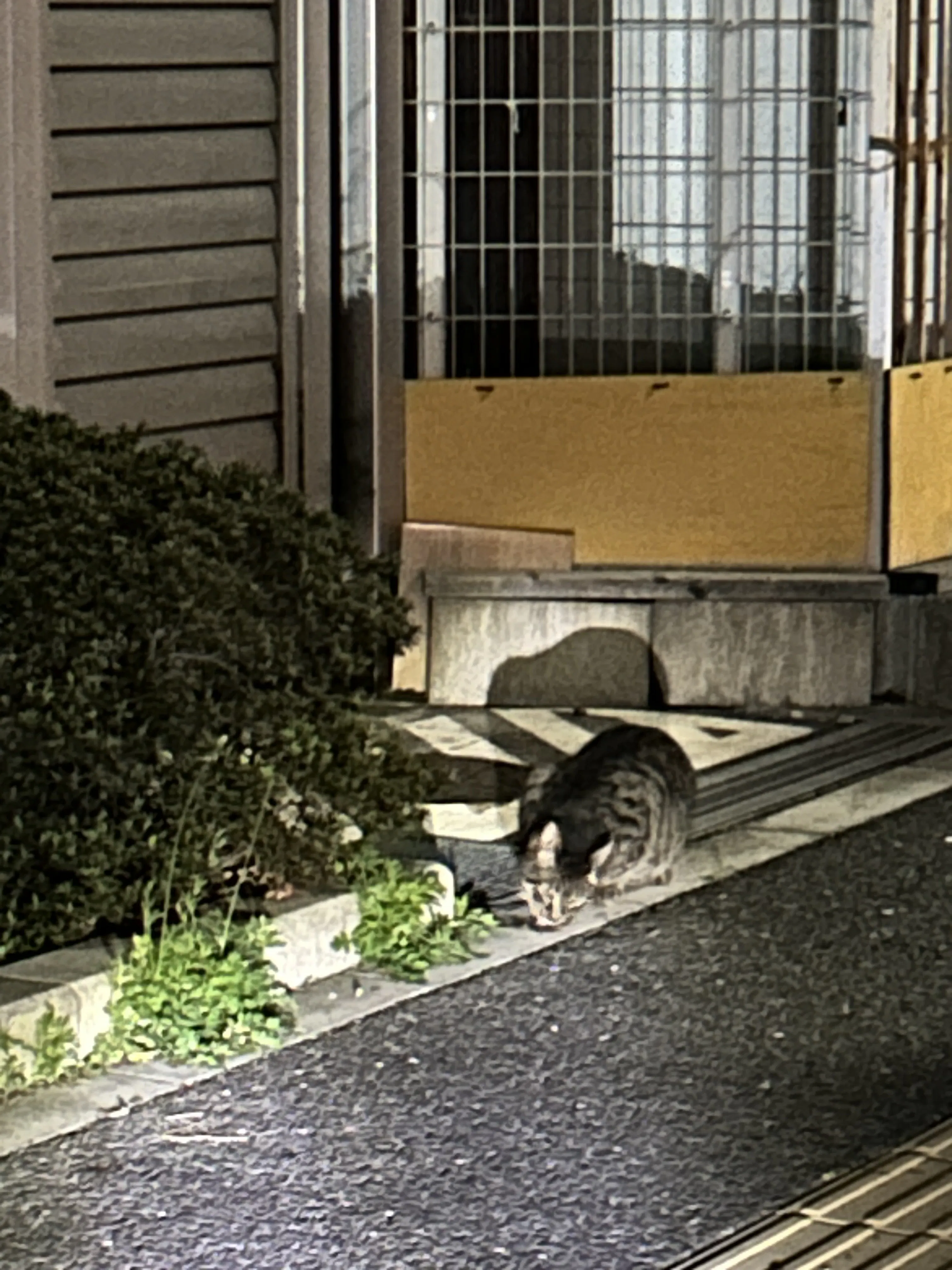 昨夜はチャトラ居なくてキジ猫が待ってくれてました。ねぇ、毎日ジャンケンして決めてるん?2人で来てくれてもHoriはへっちゃらですよ。しかし、メタボね君。