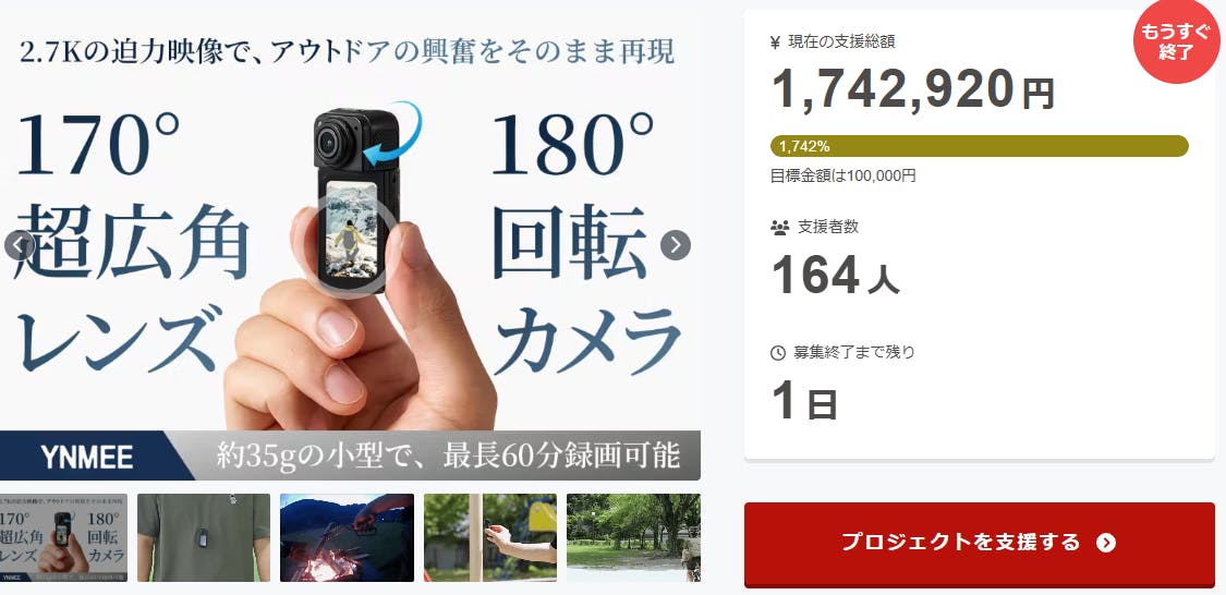 ご支援者様、2.7K高解像度170°広角×180°回転 - ポケットサイズの多機能カメラにご興味をお持ちいただきありがとうございます。お陰様で、開始から支援総額174万円達成することができました!終了までわずか 1 日となります。<ポケットサイズで持ち運びやすい多機能カメラ。2.7K高解...