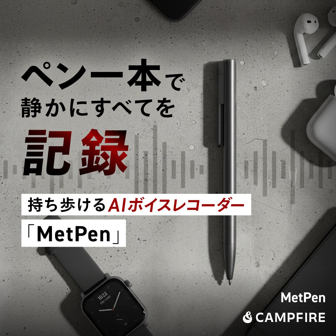 支援者の皆様お世話になっております。「MetPen」プロジェクトは本日より公開いたしました!プロジェクトページをご覧いただき、誠にありがとうございます。「MetPen」のおすすめポイント・AI搭載:話すだけで文字起こし&要約 ・約19時間連続録音・クラウド不使用:データは本体保存+USBアクセ...