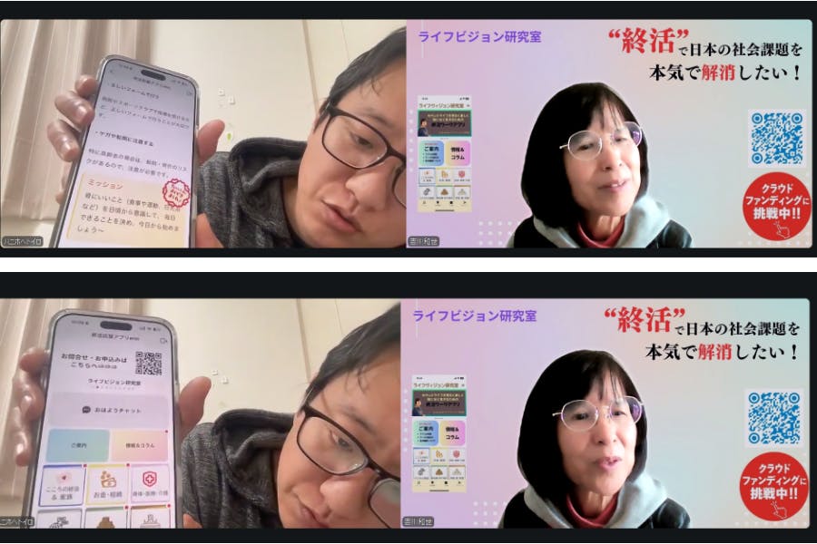 アプリ開発者の更科さんと打ち合わせをしました。すでに半分ぐらい出来上がっていて、これなら予定よりも早く完成しそうな感じがします。まず、アプリのトップ画面ですが、今まで小さくて見つけにくかった生存確認のための「おはようチャット」のボタンが大きくなってすぐにわかるようになっています。さらに、現在の...