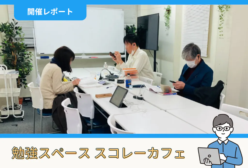 こんにちは!古岩井です(^^)今回は3月28日(土)に開催した勉強スペース「スコレーカフェ」の開催報告になります。最後までお付き合い頂ければ嬉しいです!目次1.スコレーカフェって何?2.当日の様子3.次回の開催予定参加申込みはこちら!1.スコレーカフェって何?スコレーカフェとはレンタルスペース...
