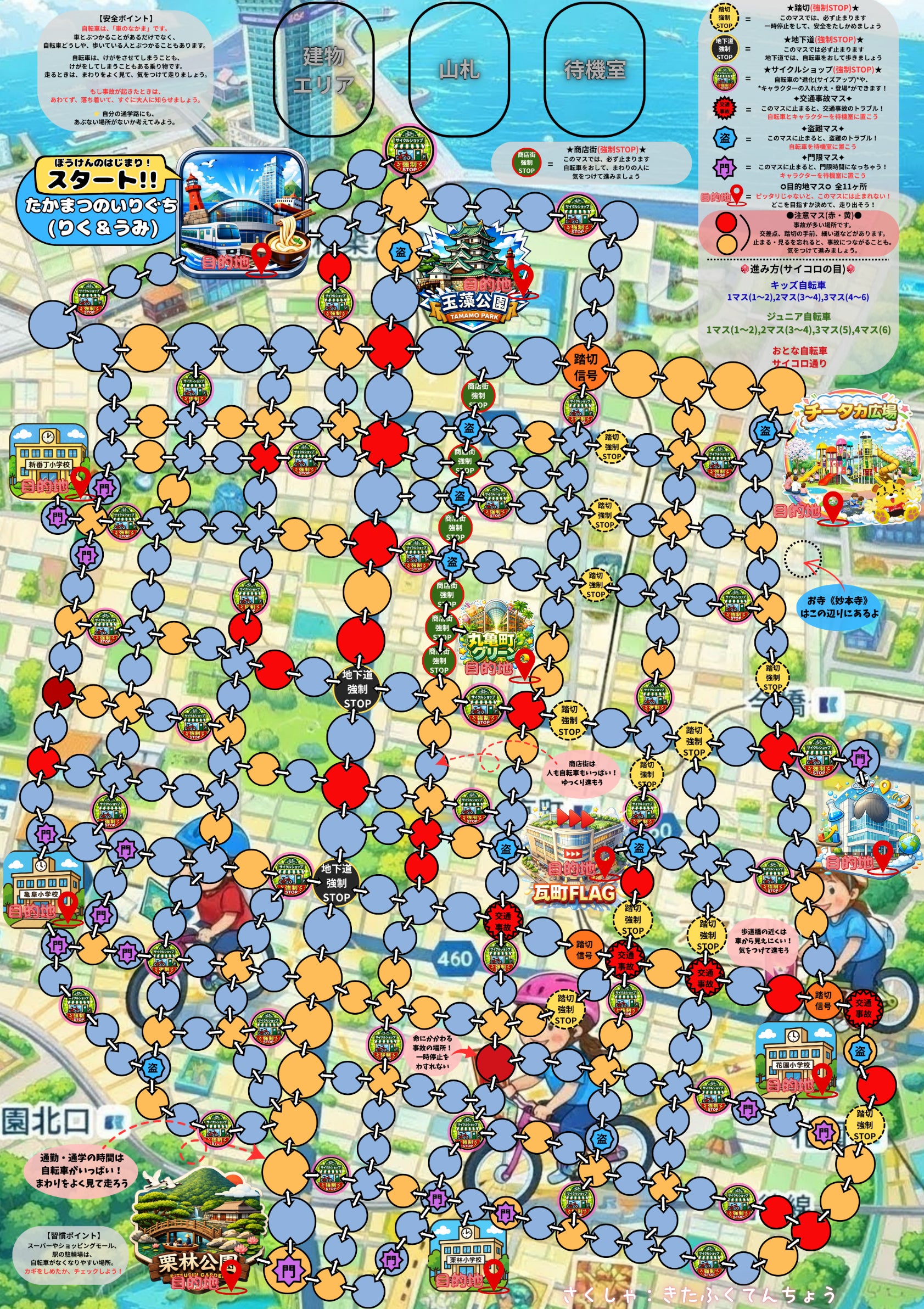 今回は、マップの改良についてご報告させていただきます。以前ご紹介したマップをもとに、 より分かりやすく、遊びやすくなるよう調整を進めています。例えば、 サイクルショップのマスをより目立つようにしたり、 スタート地点の色合いを分かりやすく調整しています。小学生でも直感的に理解できるよう、 見た目...