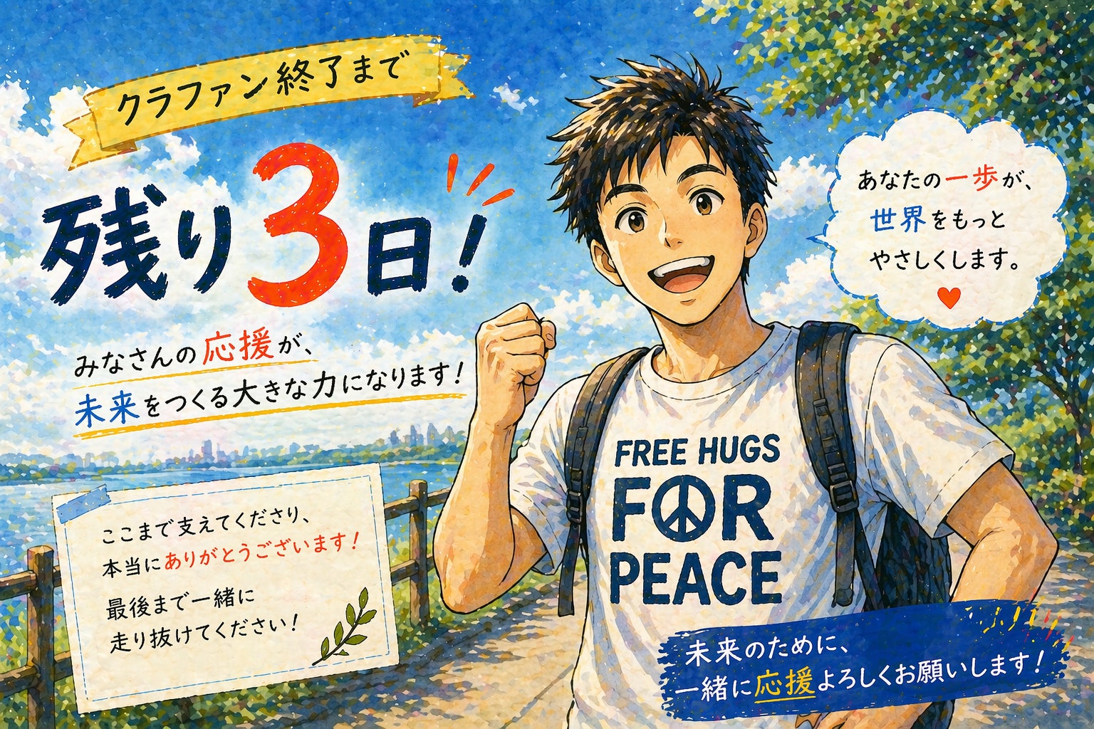 皆さま、いつも温かいご支援をいただき本当にありがとうございます。プロジェクト終了まで、いよいよ残り3日となりました。現在の状況をご報告させていただきます。支援金額:7,449,633円支援者数:1,125名ついに支援者数が1,100名を超えました。これほど多くの方々と繋がれたこと、一歩ずつ...