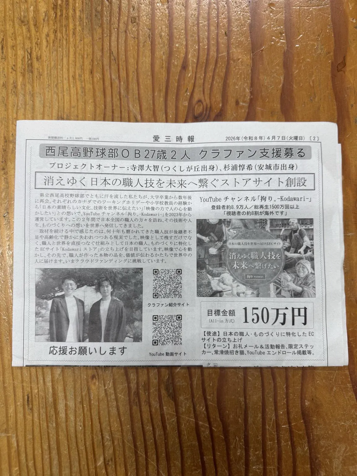 この度、地域に根ざした新聞「愛三時報」様に、私たちのクラウドファンディングを取材していただきました。愛三時報は、西三河エリアの企業や人、ものづくりの現場を丁寧に取り上げ続けている、地域密着型の新聞です。大きなメディアでは決して拾いきれない、“現場のリアル”や“人の想い”を届け続けている存在です...