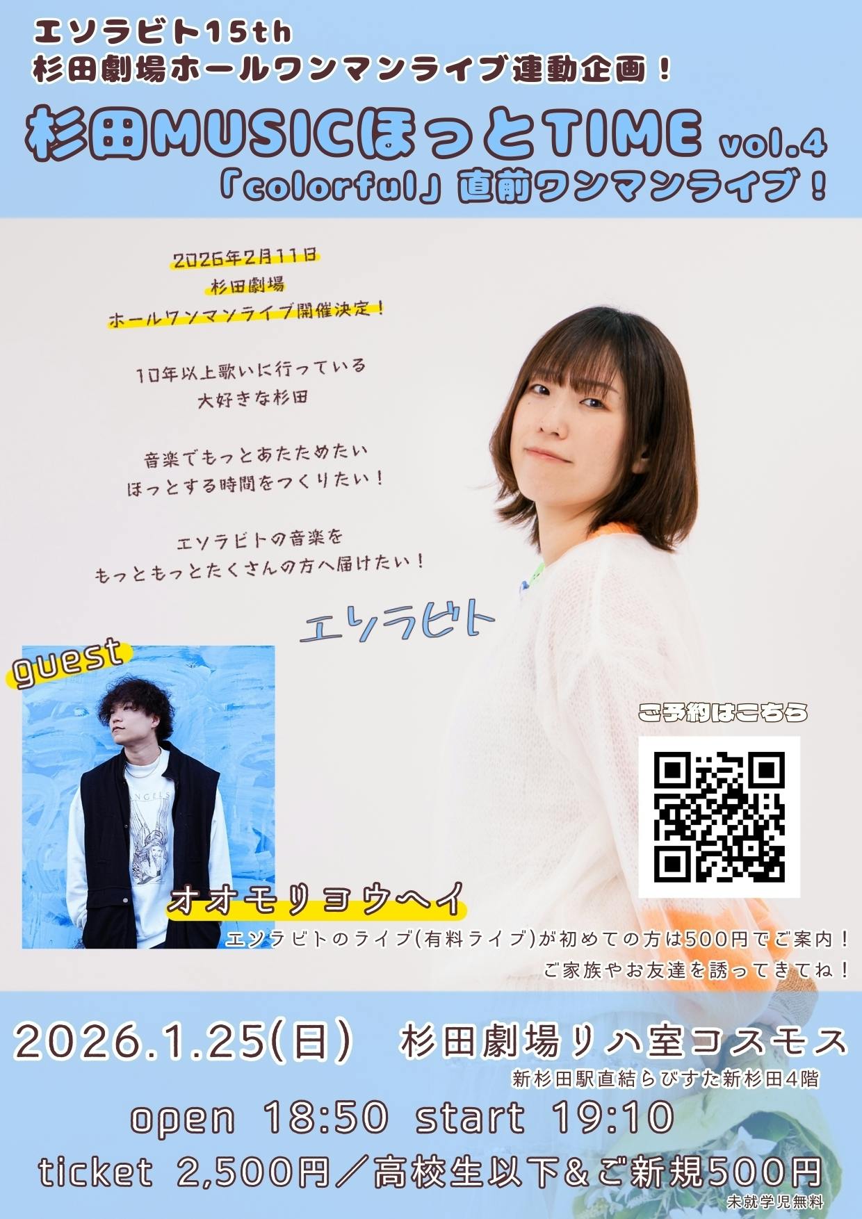 こんにちは!エソラビトです!杉田劇場ホールワンマンまで1ヶ月弱!今日しかない今日を大事に活動しています。さて、本番は一緒に歌っていただきたい曲が2曲!「colorful」https://youtu.be/rPql_Ci6RPg?si=k3jwiFdZtYRWGQZF「空へ」https://yo...