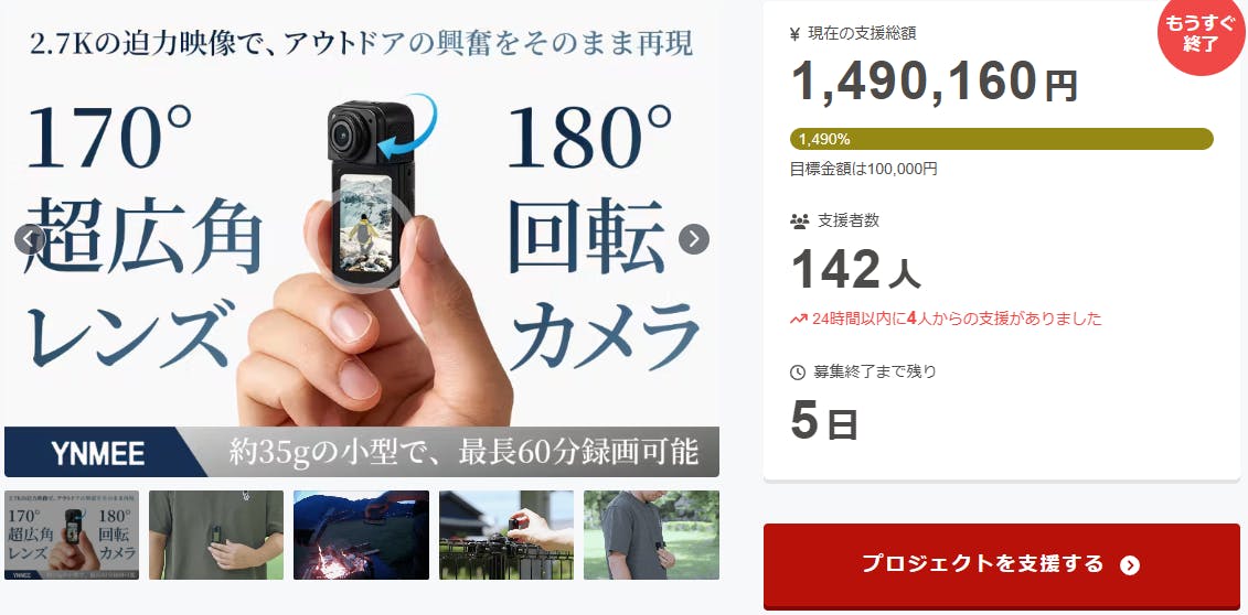 ご支援者様、2.7K高解像度170°広角×180°回転 - ポケットサイズの多機能カメラにご興味をお持ちいただきありがとうございます。お陰様で、開始から支援総額149万円達成することができました!終了までわずか 5 日となります。<ポケットサイズで持ち運びやすい多機能カメラ。2.7K高解...