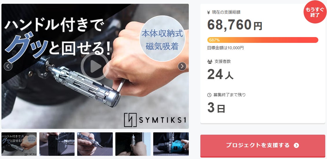 ご支援者 様、内蔵ハンドルで回しやすい!18ビット収納式ドライバー【SYMTIK S1】にご興味をお持ちいただきありがとうございます。終了までわずか 3 日となります。プロジェクト終了後、「内蔵ハンドルで回しやすい!18ビット収納式ドライバー【SYMTIK S1】」をCamfire特別価格で入...