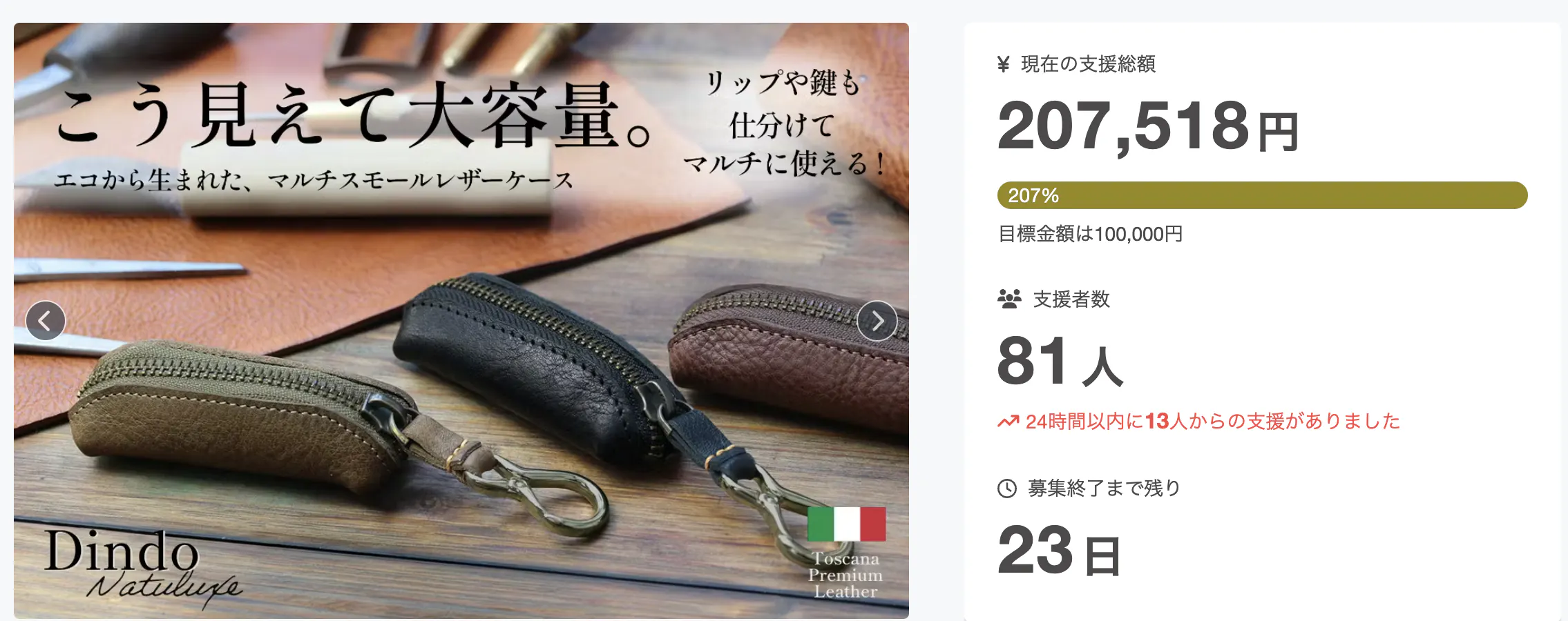 実行者のINCROCI MILANOです。現在実施中のプロジェクト"Dindo Natuluxe" は、皆様からのたくさんのご支援をいただき、目標を200%達成いたしました!!たくさんのご支援、誠にありがとうございます!Dindoは、・制作時にどうしても出てしまう端革を、簡単に捨てるのではなく...