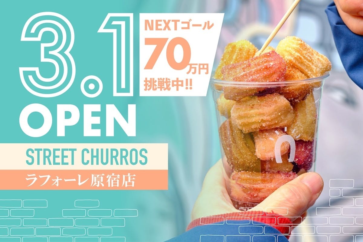 こんにちは!STREET CHUROS JAPANです。クラウドファンディングが遂に始まりました!応援よろしくお願いします!開始2時間弱で100%以上達成!ありがとうございます!!現在ネクストゴール向かってご支援を募っております。
