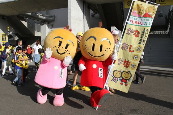 雨の日にイベントに出られずに悔しい思いをしていた、白井市のイメージキャラクターである「なし坊」と「かおり」に、みんなで「雨具」をプレゼントしませんか。