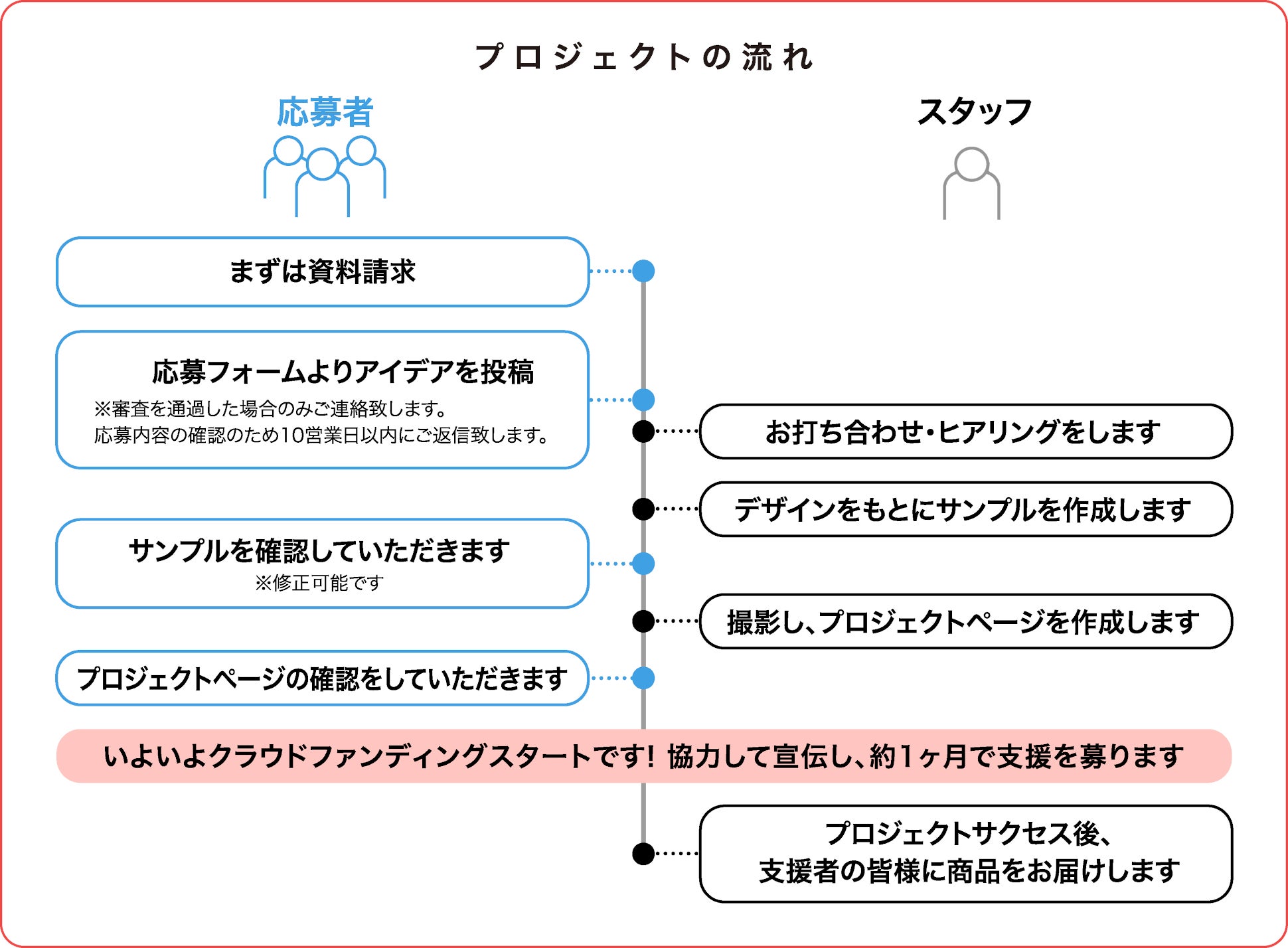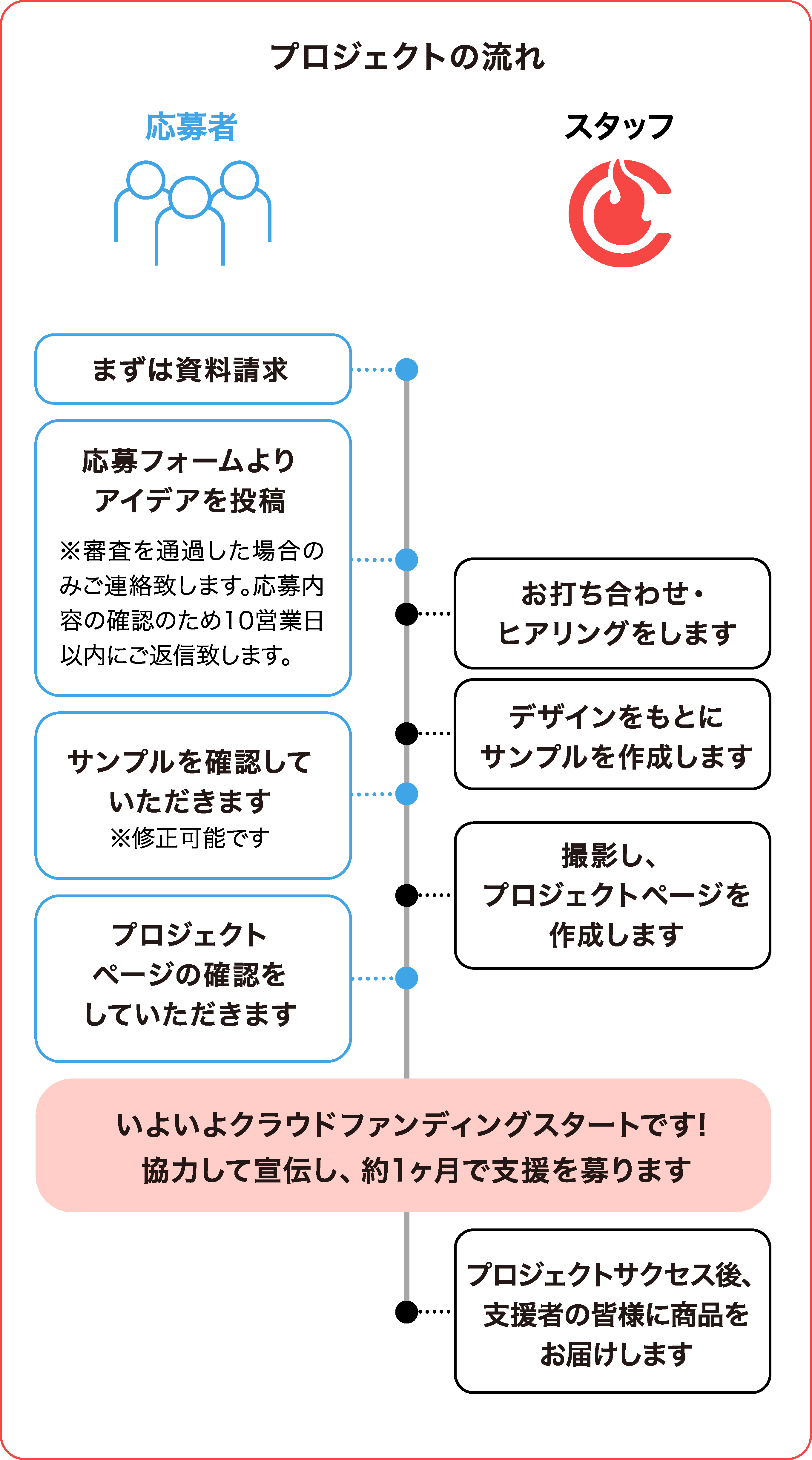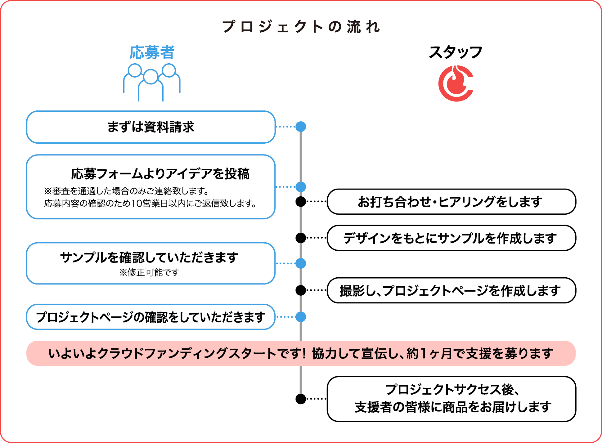 当社は審査を通過したアイデア企画を、これを製品化した商品をお返しに設定した購入型プロジェクトのプロジェクトオーナーとして当社ウェブサイトに掲載し、クラウドファンディングを行います。この場合、CAMPFIREの利用規約第15条第1項後段は適用されないものとします。