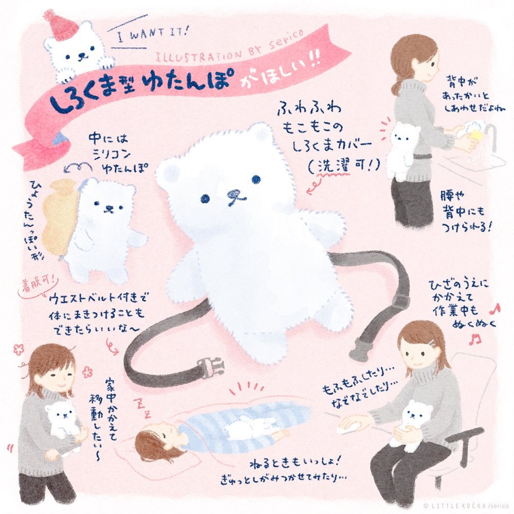 でも、”しろくまぬいぐるみ湯たんぽ”プロジェクトをクラウドファンディングで実施します、とファンのみなさんに伝えると、思ってた以上に反応があって。sericoが気まぐれに描いたイラストを覚えてくれている方たちから”本当にほしかった!”という声が多く上がったんです。