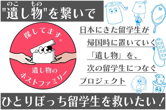 交換留学⽣が⼀⼈暮らしを終えて帰国する際に⽇本に取り残してしまう、家電や⽇⽤品、⽇本で⽣活を送る上での知識や知恵といった”遺し物”を、次の交換留学⽣に引き継ぐた...