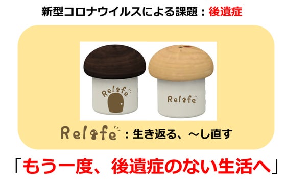 “Relife”はきのこの形を模倣した加湿器型のデバイスです。自動的に音声センサが咳に反応して、胞子のようにミストを放出するため、日常生活の中で無意識でのリハビ...