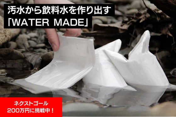 WATER MADEは浸透圧の最新技術によって飲料水としては飲むことが出来ない汚水にWATER MADEの専用パックを浸すことで、パック内に浸透圧によって飲料水...